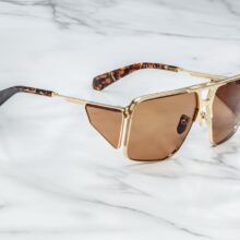 Serious and sleek titanium navigators, handcrafted in Japan. Featuring bold double-bridge, new monoblock hinges, hairline engraved temple, lensed eyeshields, and acetate temple sleeves.