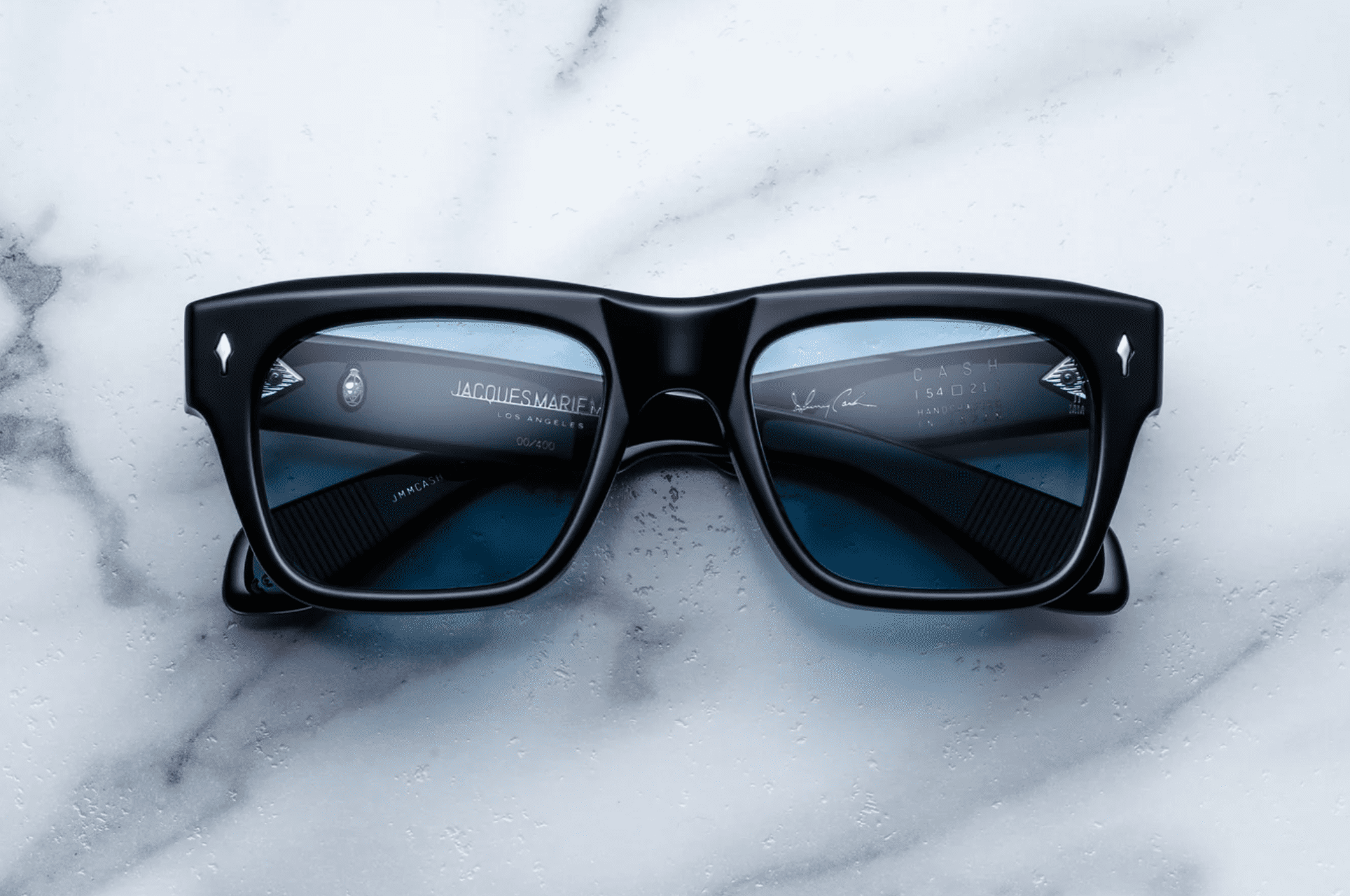 Classic crooners with bold brow, sculptural temples, and our signature precious metal details, produced for the Johnny Cash Collection by JMM.