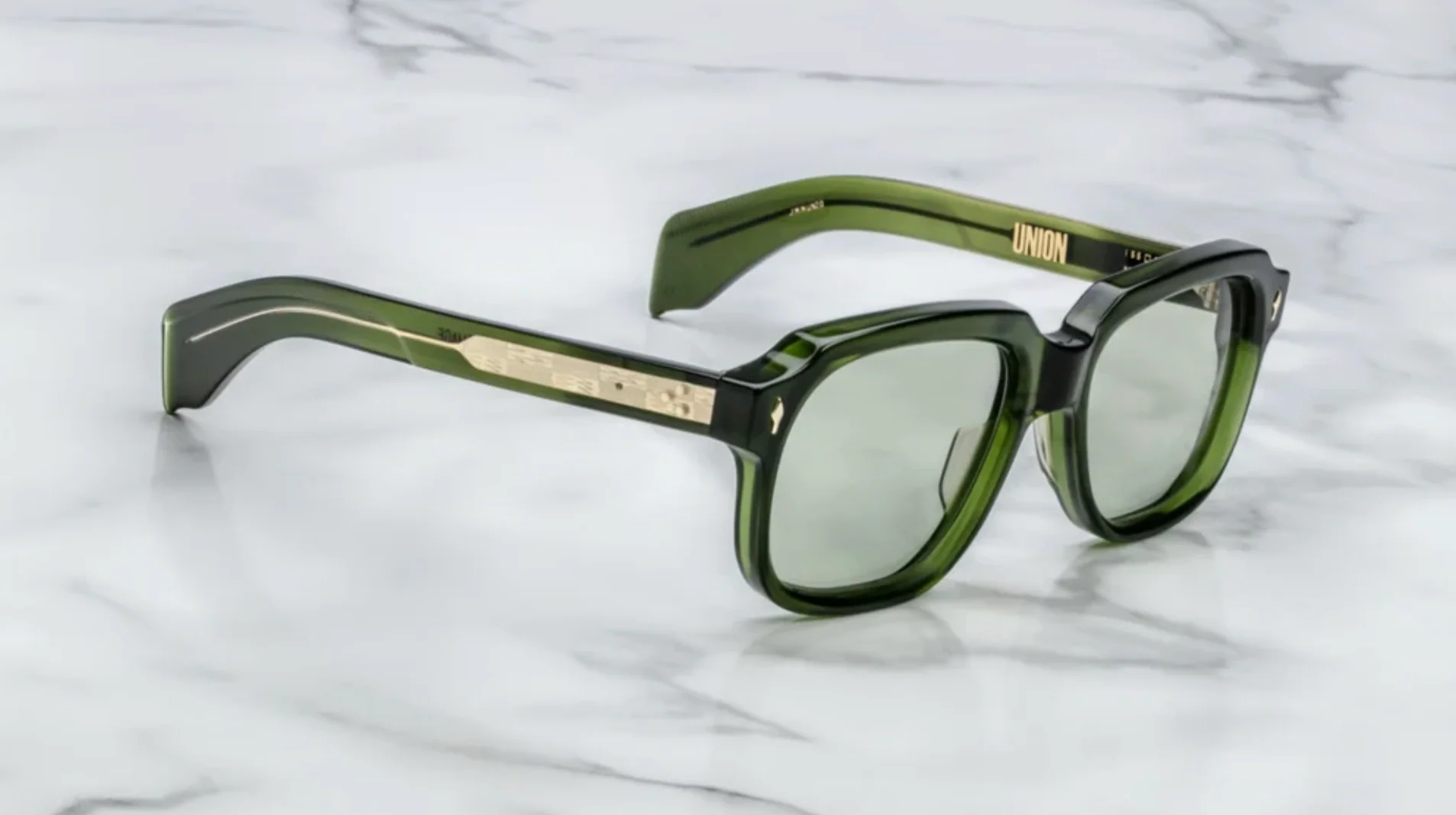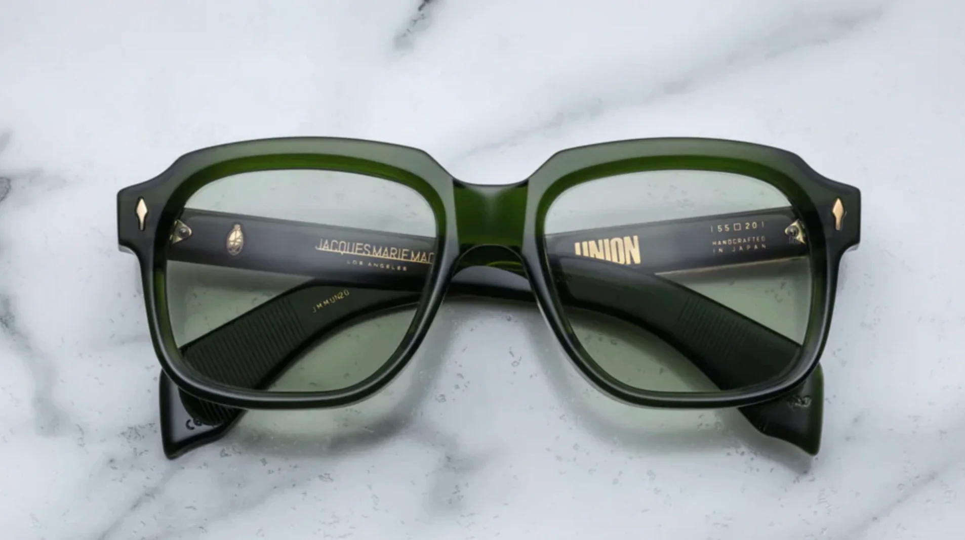 An original style made in partnership with Union, these rectangular ‘60s-inspired glasses feature our signature precious metal hardware, hinges, and exposed wirecore temples hairline-engraved with Union’s angular design motif.